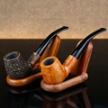 Best Ebony Wood Pipe 9mm Filter Smoking Pipe Chinese Style Tobacco Pipe with 10 tools Handmade Bent Wooden Pipe Smoke Tool