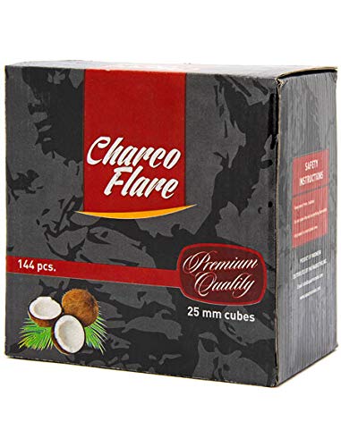 - Charco Flare 25mm Cube Coconut charcoal comes in a 144pc (2kg) box.